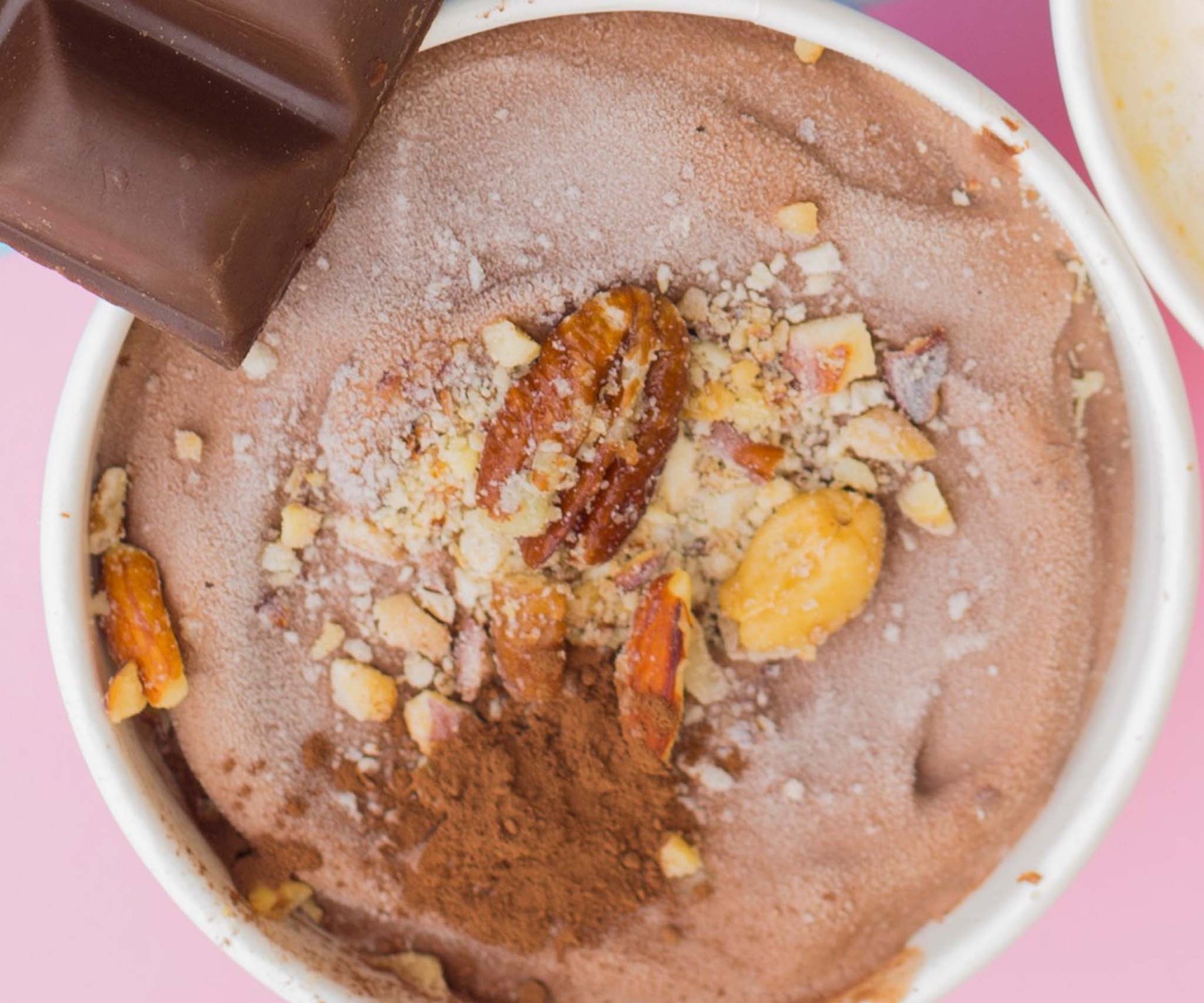Chocolate flavoured ice cream with mixed nuts (almonds, cashews etc)